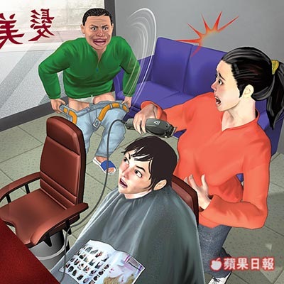 The husband might have accidentally saved that poor woman from having a completely shaved head!
