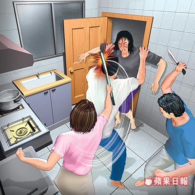 The mother handed a knife to the son and stood in the doorway wouldn’t let the father get out, the son started cutting the father with the knife, and the daughter later on came in with an iron pipe and beat her father’s head with it too. The father finally escaped and went to the police claiming his family was trying to kill him. He also said his wife said to the son “kill your father!” when she handed him the knife. The police arrested the mother, son and daughter after they admitted attacking the father but the mother denied telling her son to kill his father. They also accused the father of beating up the mother but the police could not find the baseball bat so no arrest of the father at this moment.