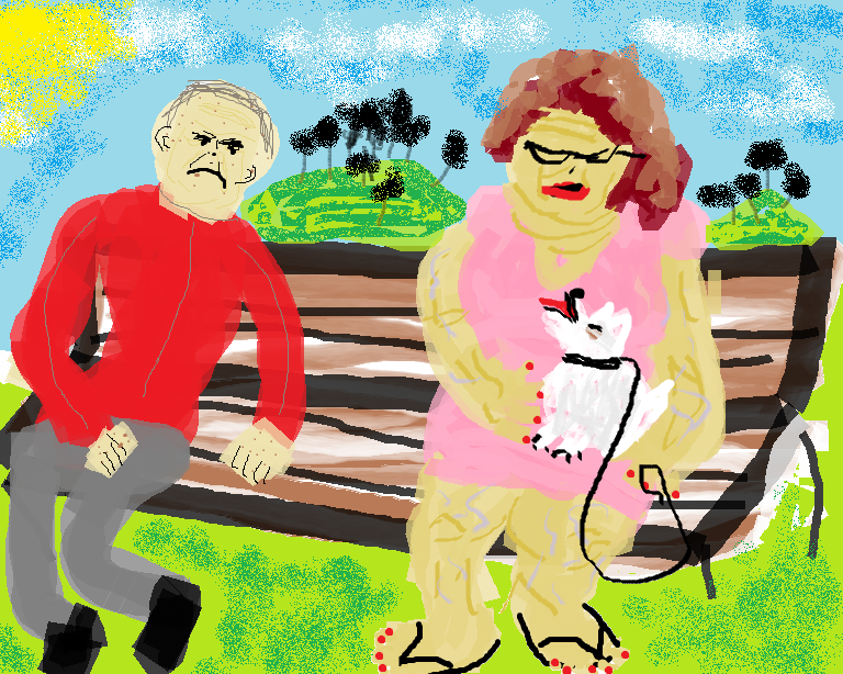 1. that poor dog no wonder he’s bitter look at that lady’s veins all over her arms and legs, but atleast she paints her toenails. that old man has a giant head and hip dysplasia it looks like.